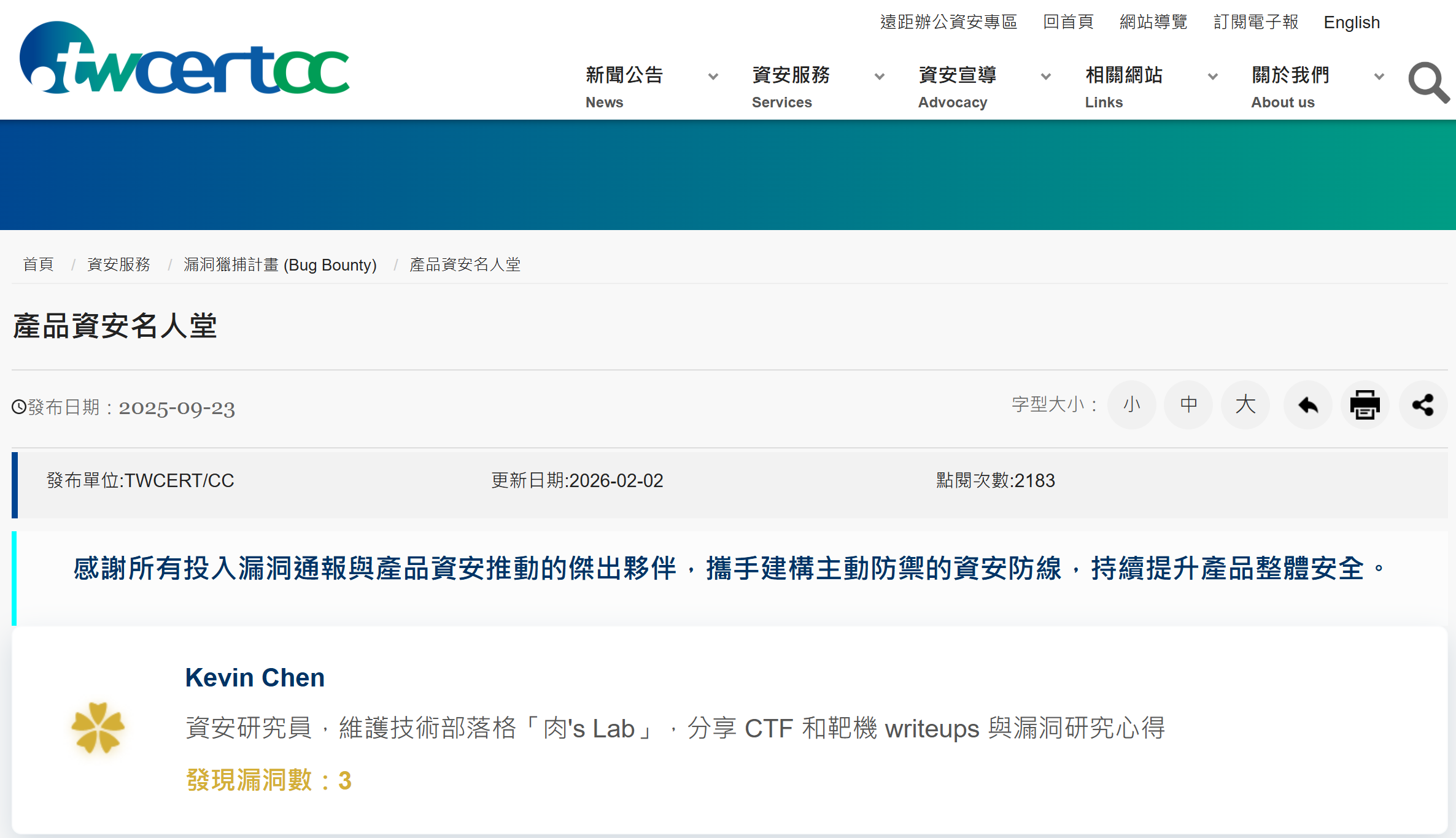 - Companies that recognized my bug bounty work: Dcard, BriteMed, Advantech, IEI, Taipower