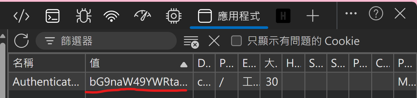 開啟 F12 → Application → Cookies,發現: