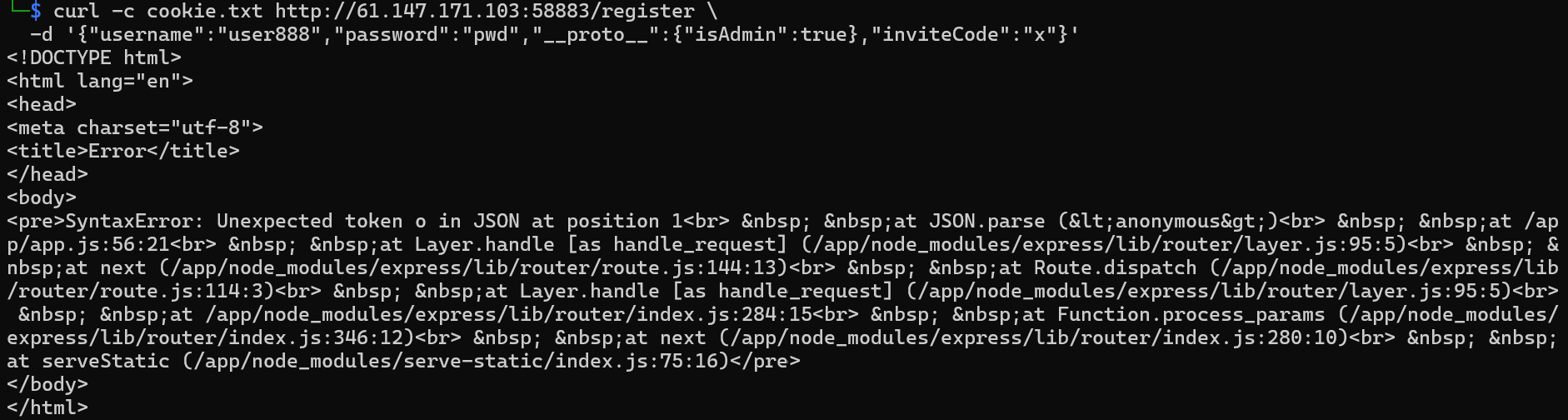 "__proto__":{"isAdmin":true} inviteCode可以是任意值